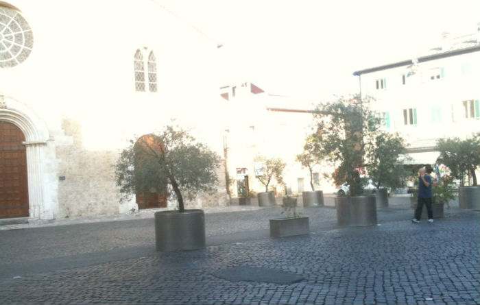 Questa mattina il Comune di Terni ha fatto posizionare 13 fioriere in piazza San Francesco con l’obbiettivo di evitare la “sosta selvaggia” nell’area antistante l’edificio religioso e l’oratorio. Si tratta di 8 grandi contenitori in acciaio inox in cui sono stati messi degli ulivi e di 5 di dimensioni ridotte in cui vi sono piccole piante. Nonostante siano passate poche ore dall’installazione, qualcuno ha già trovato il tempo di lasciarvi il segno della propria inciviltà: un chiaro presagio di quale sarà l’utilizzo finale di quei contenitori da parte di alcuni villani a passeggio.