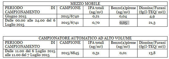 Prosegue Arpa: “I microinquinanti organici rilevati sia dal mezzo mobile che dal campionatore ad alto volume presentano valori di concentrazione inferiori a quanto indicato, per ambienti esterni, dalla Commissione Consultiva Tossicologica Nazionale (40 fg/m3). Si evidenzia comunque che le concentrazioni rilevate dal mezzo mobile, già presente in prossimità del sito, a seguito dell’incendio risultano quattro volte superiori rispetto al valore medio mensile rilevato nel corso del mese di giugno 2015”.