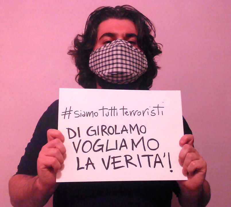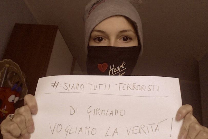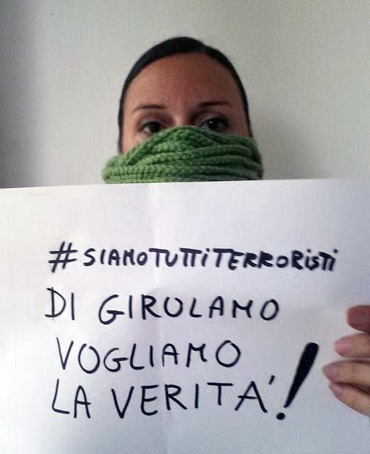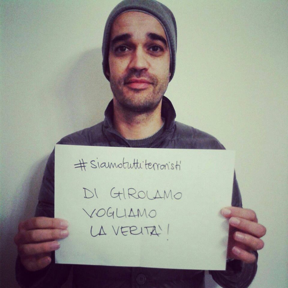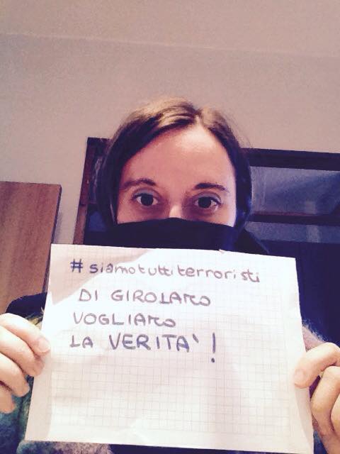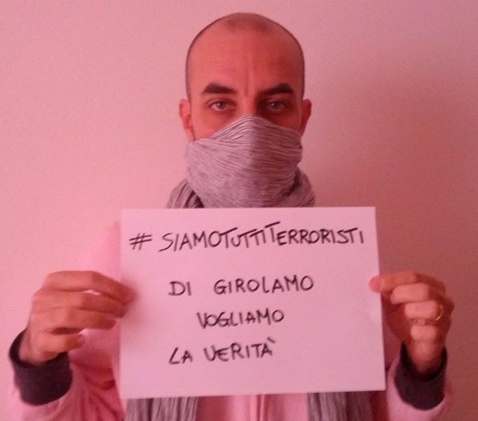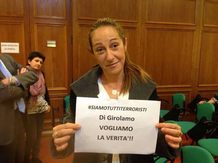 Bocca e naso simbolicamente coperti per proteggersi dalle polveri sottili, in mano un cartello con scritto: “#siamotuttiterroristi Di Girolamo vogliamo la verità”. L’iniziativa l’ha lanciata ieri sera il consigliere comunale del Movimento 5 Stelle, Thomas De Luca, ed in poche ore è stata raccolta e fatta propria da deputati, senatori e decine di semplici cittadini di Terni. La campagna riguarda l’inquinamento della Conca e la contaminazione degli alimenti.