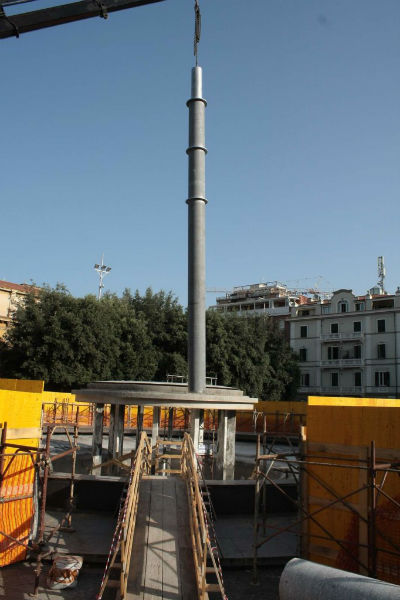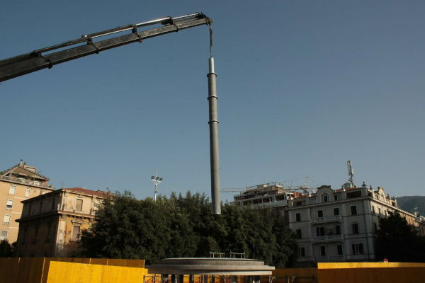Alto 24 metri, il nuovo pennone è stato realizzato dal Tubificio di Terni, una delle controllate Ast. “Il nuovo ‘ago’ – ha spiegato Piervito Deflorio, Consigliere delegato di Tubificio di Terni Spa – rispetterà il progetto originario, con alcune innovazioni che ne garantiranno la tenuta”. A partire dall’acciaio utilizzato, 316, caratterizzato da un’elevata resistenza alla corrosione. La struttura del ‘pennone’ sarà composta da quattro parti spesse 12 millimetri, saldate da dieci “camicie” in acciaio inox.