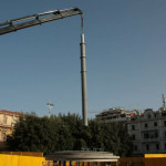 La Fontana di Piazza Tacito ha di nuovo il suo pennone. Da qualche settimana sono infatti iniziati i lavori di restauro e questa mattina è stata installata la lunga asta d’acciaio che era stata danneggiata a dicembre 2011 a causa del peso di alcune luminarie natalizie ed era stata completamente rimossa a luglio 2012 (qui l’articolo sulla rimozione).