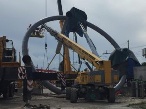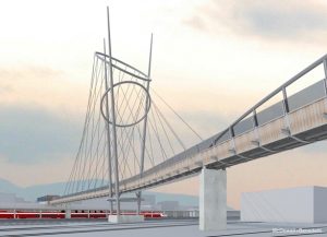 Spiega il Comune di Terni che alla fine di maggio sono iniziate le operazioni notturne di varo dei “conci” del ponte a partire dalla testata sud, ovvero delle sezioni della passerella preassemblate a terra e complete di parapetti, nonché dei pezzi della grande struttura del tripode, il sostegno della parte strallata che raggiunge l’altezza di 55 metri. Una volta completato il montaggio di queste componenti e pertanto assemblata la passerella fino alla testata nord con il montaggio del ponte ad arco e vincolata la parte strallata al tripode attraverso il posizionamento e tesatura delle funi, i lavori proseguiranno con il montaggio della pavimentazione, il completamento della parte impiantistica e delle altre finiture e lavori.