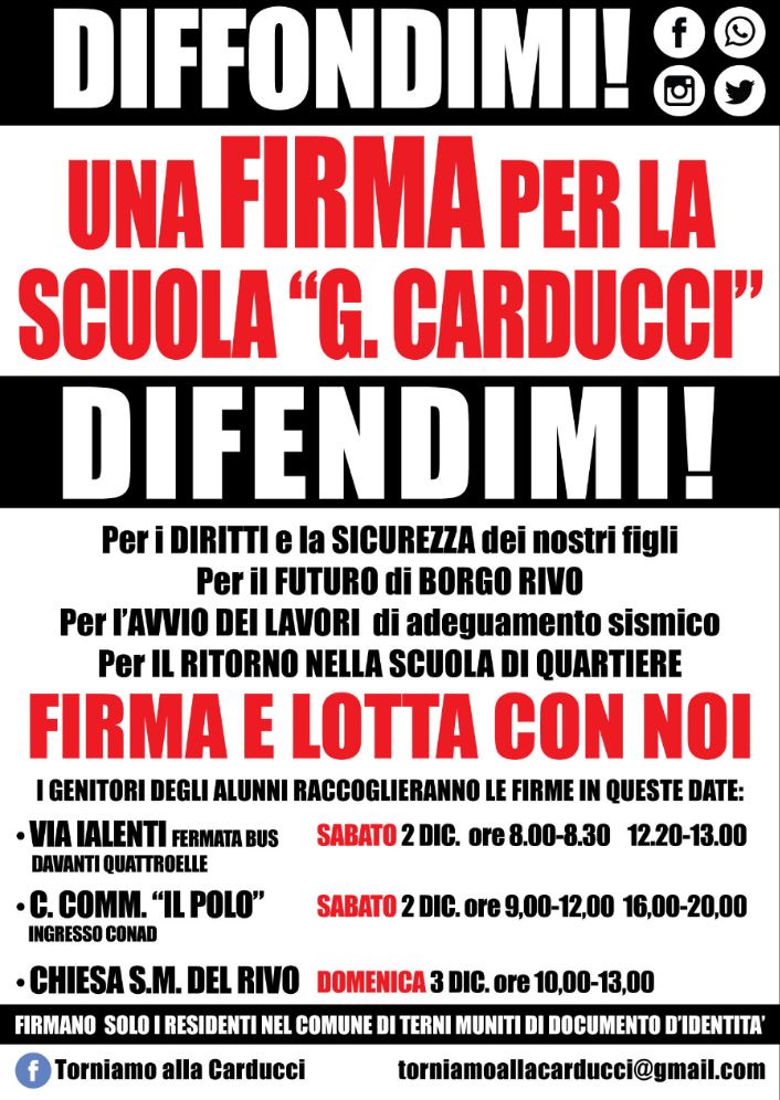 Pingback: Terni, procede con grandi risultati la petizione per la scuola Carducci()