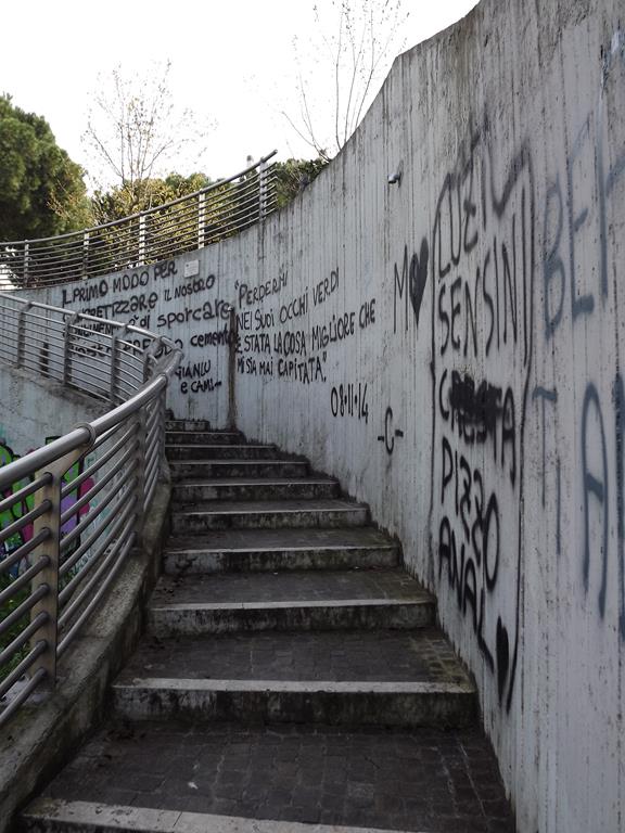 Prosegue il fotografo: “Prima di giungere a ponte Allende, altro spazio verde anche questo lasciato in balia di se stesso. Al ritorno, passando invece per il lungo Nera Torquato Secci: altro non è che un sentiero di breccia e una ringhiera arrugginita, vi sono evidenti i passaggi e bivacchi di tossicodipendenti e spacciatori. Anche qui passeggiare sul calar della sera diventa una missione impossibile dai mille risvolti”.