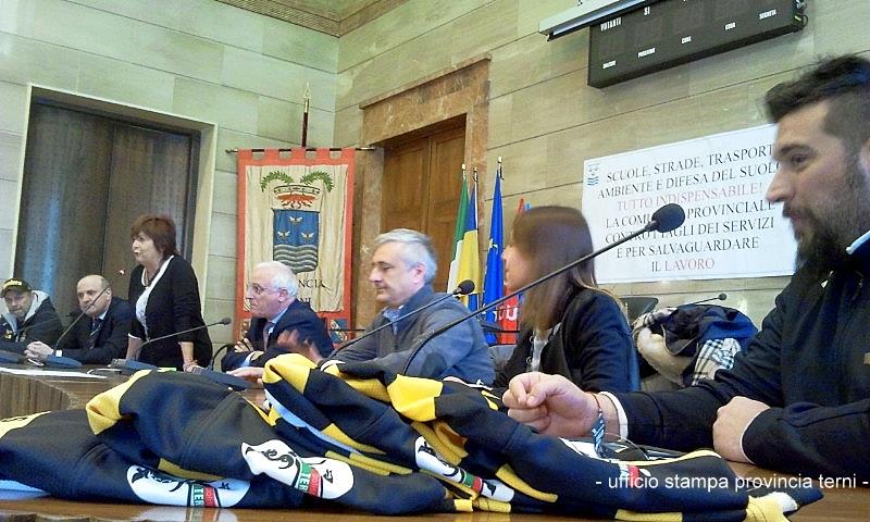 Questa mattina Steelers associazione Terni Football Asd, squadra ternana di football americano, è stata ricevuta in sala del Consiglio dal presidente della Provincia Leopoldo di Girolamo e si è presentata ai giornalisti. C’erano tutti i giocatori della prima squadra, i dirigenti e le cheerleaders che accompagnano la squadra in ogni gara.