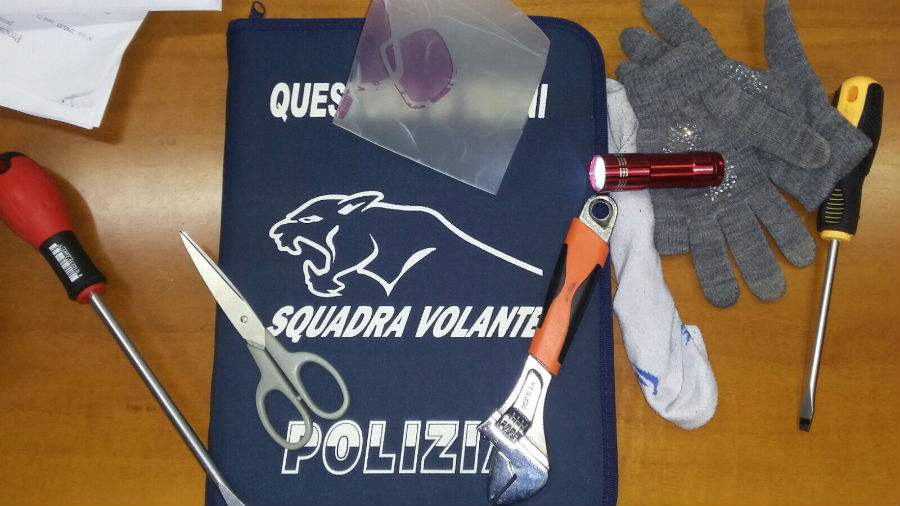 Taschetti ha bloccato le due giovani ed ha chiesto cosa facessero in città; loro, pensando di non essere state viste uscire dal palazzo, hanno risposto che erano state al parco ad incontrare una loro amica. Con l’ausilio della pattuglia in servizio di poliziotto di quartiere, sono state accompagnate in questura e perquisite: dai loro indumenti è saltato fuori il “kit del nomade scassinatore” composto da due grossi cacciaviti, una chiave inglese ed una scheda di plastica per aprire porte blindate chiuse senza mandate.