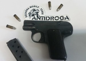 Alcuni giorni fa al 113 è arrivata una segnalazione anonima per movimenti sospetti di giovani, italiani e stranieri, in un palazzo del centro di Terni. La polizia ha messo in atto degli appostamenti: la squadra antidroga e la squadra volante hanno tenuto sotto controllo il portone del palazzo fin quando, ieri pomeriggio, hanno fermato due persone sospette, un italiano e uno straniero. L’italiano ha subito ammesso di essere un tossicodipendente e di trovarsi lì per acquistare una dose di eroina. Sono scattati i controlli all’interno dell’abitazione dello straniero dove, in un borsello, sono state trovate due dosi di eroina (0,6 grammi) e sostanza da taglio (5 grammi). All’interno di un armadio, custodita nella sua fondina, gli agenti hanno poi trovato una pistola, perfettamente funzionante, calibro 6,35 insieme a 4 proiettili. L’arma, che non è risultata inserita nel catalogo nazionale delle armi comuni da sparo, è stata sequestrata e lo straniero, senza documenti, è stato portato in questura.