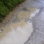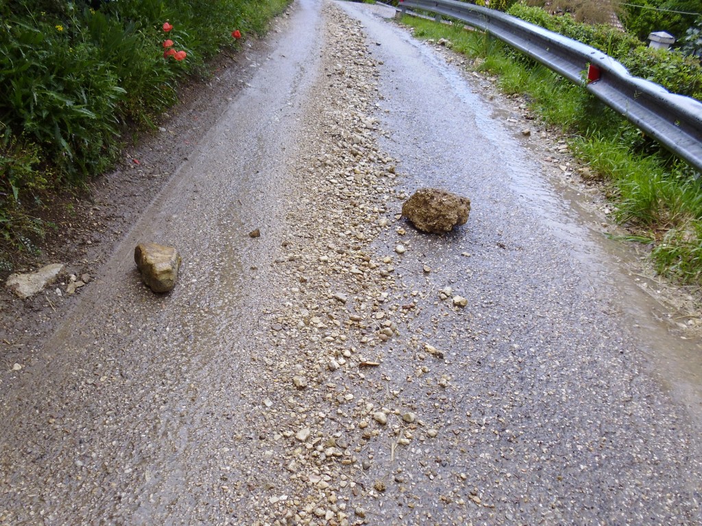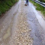 In strada della Palombara s’è radunato un gruppetto di persone: sono quelle che ormai da anni denunciano il dissesto di una via che si sta lentamente disfacendo sotto i loro occhi, erosa dall’acqua. Il giro “panoramico” – si fa per dire – nel tratto che conduce dall’ingresso della strada sino a Torre Orsina paese e da lì al ricongiungimento della Valnerina sembra una speciale del rally di Sardegna: solo terra e sassi, solchi profondi, enormi massi scesi a valle e finiti nel mezzo della carreggiata, con tutte le conseguenze del caso. Un vero e proprio attentato alla sicurezza, che fa il paio con l’altro problema, quello del tubo scoperto in mezzo alla strada, col quale i residenti convivono da quasi 4 anni.