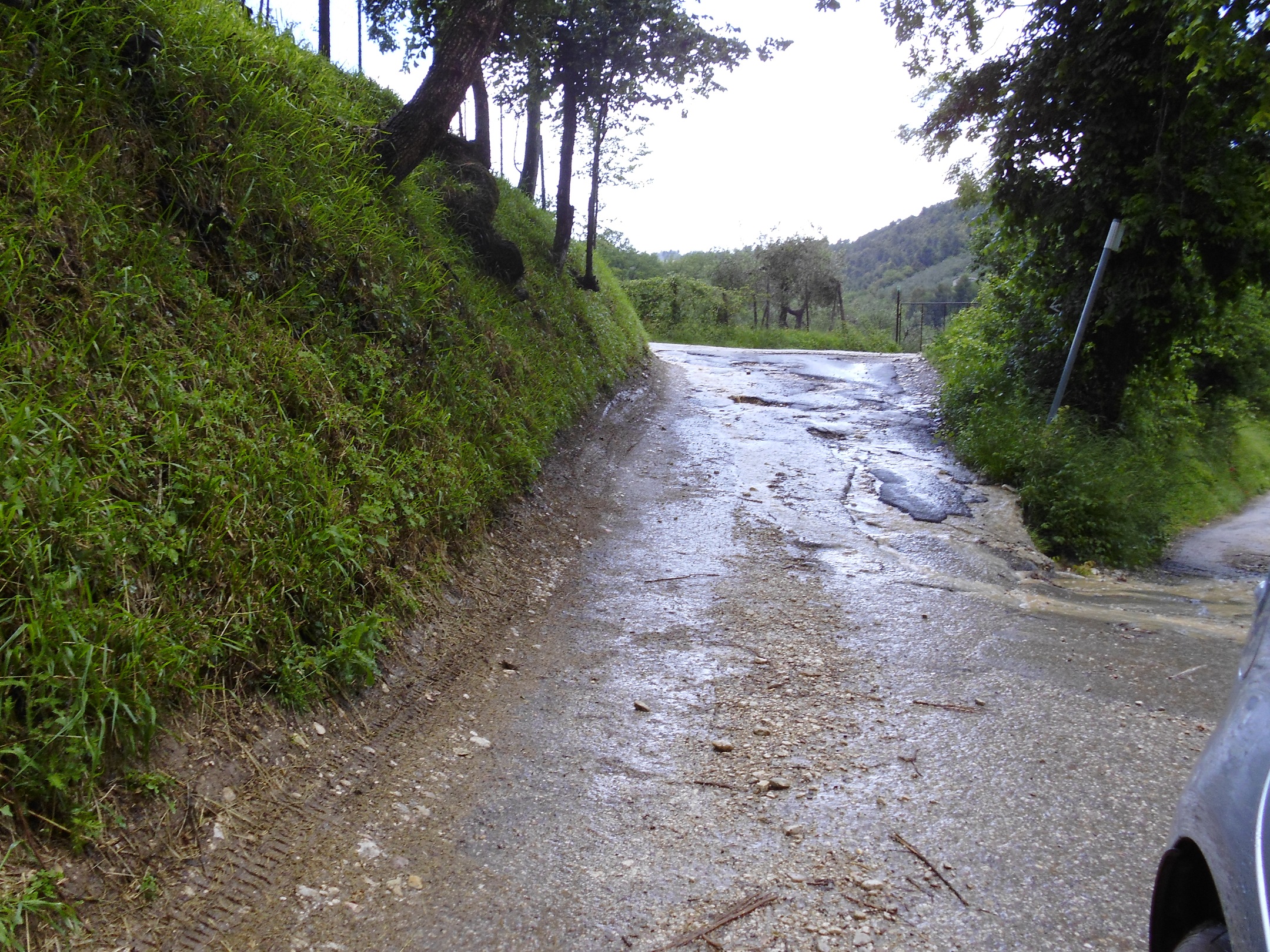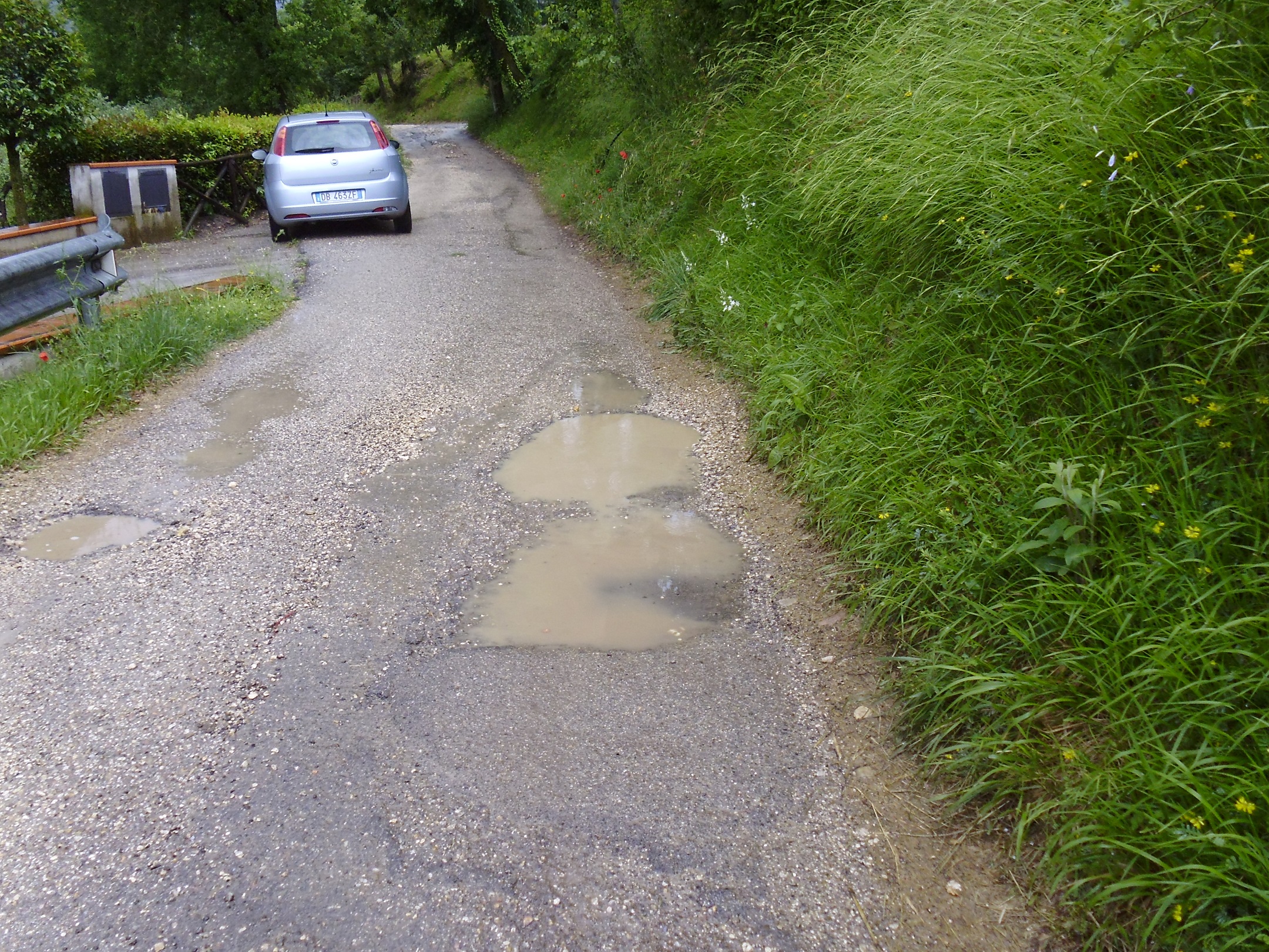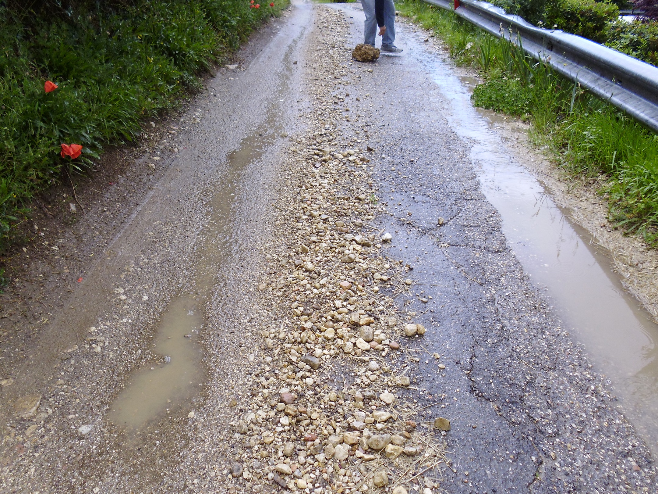 Il fondo stradale è assolutamente compromesso, a tratti quasi impraticabile, comunque estremamente pericoloso, soprattutto nelle zone in cui confina con un fosso non protetto. Non solo: “Molti tratti della strada sono sprovvisti di paracarri – dicono ancora i residenti- e d’inverno il percorso si può fare solo stivali ai piedi o mettendo a rischio l’automobile, perché si riempie oltreché di detriti anche di fango. In più non c’è un lampione, non c’è alcuna segnaletica né a terra né di precedenza, col risultato che le automobili, in queste precarie condizioni del manto, devono anche fare lunghe retromarce. Abbiamo più volte sollecitato, anche telefonicamente, ma nessuno ha mai fatto niente”.
