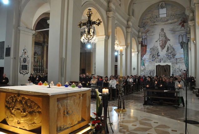 “Tutti facciamo il nostro ingresso nella Chiesa come laici. Il primo sacramento, quello che suggella per sempre la nostra identità, e di cui dovremmo essere sempre orgogliosi, è il battesimo – ha detto il vescovo monsignor Piemontese nel concludere la veglia -. Ci fa bene ricordare che la Chiesa non è una élite dei sacerdoti, dei consacrati, dei vescovi, ma che tutti formiamo il Santo Popolo fedele di Dio. In questo Anno Santo stiamo camminando sulla strada della comunione e della missione nel segno della misericordia. Ognuno per la vocazione e il carisma proprio siamo operosi nel costruire la comunione e nel dare l’apporto per partecipare alla missione di annunzio del Vangelo. Come pastori, uniti al nostro popolo, ci fa bene domandarci come stiamo stimolando e promuovendo la carità e la fraternità, il desiderio del bene, della verità e della giustizia. Come facciamo a far sì che la corruzione non si annidi nei nostri cuori”.
