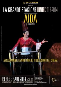 locandina-aida-microcinemaMercoledì 19 febbraio alle 20, in esclusiva HD, l’Aida di Giuseppe Verdi (regia de La Fura dels Baus) approda al cinema Caos di Terni con “La Grande Stagione Live 2013/2014” di Microcinema. L’Arena di Verona ha festeggiato i cent’anni dalla prima edizione del suo celeberrimo Festival dell’Opera presentando sullo storico palcoscenico l’Aida, il capolavoro verdiano che inaugurò la prima manifestazione del 1913, riproposta nella versione futuristica de La Fura dels Baus.