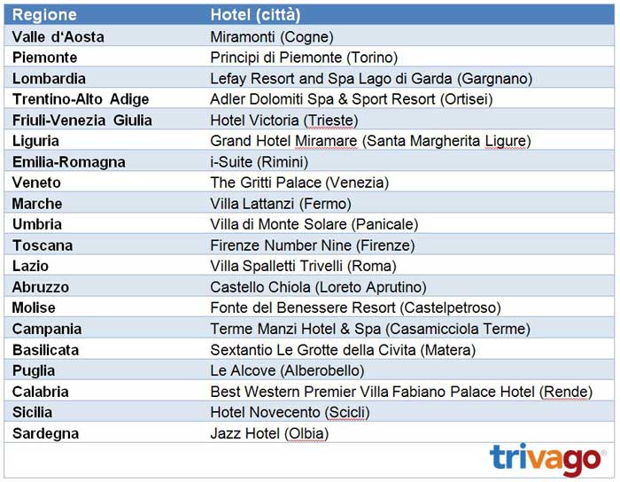 Presenza di ogni comfort, qualità del servizio, cura dei dettagli, staff preparato e attento al cliente. Questi sono soltanto alcuni degli indicatori che sono stati considerati dal motore di ricerca hotel numero uno al mondo, Trivago, per eleggere i 20 migliori alberghi delle regioni italiane nel 2013. Giunto alla terza edizione, il Trivago Hotel Award 2013 è stato attribuito a quelle strutture ricettive che si sono contraddistinte durante l’anno appena trascorso. E’ stato selezionato, infatti, il migliore hotel per ogni regione d’Italia, prendendo in considerazione la valutazione complessiva online e le recensioni da parte degli ospiti che vi hanno soggiornato. Per la regione Umbria, quest’anno, il premio è andato all’hotel spa “Villa Monte Solare”, situato a Tavernelle di Panicale, in provincia di Perugia.
