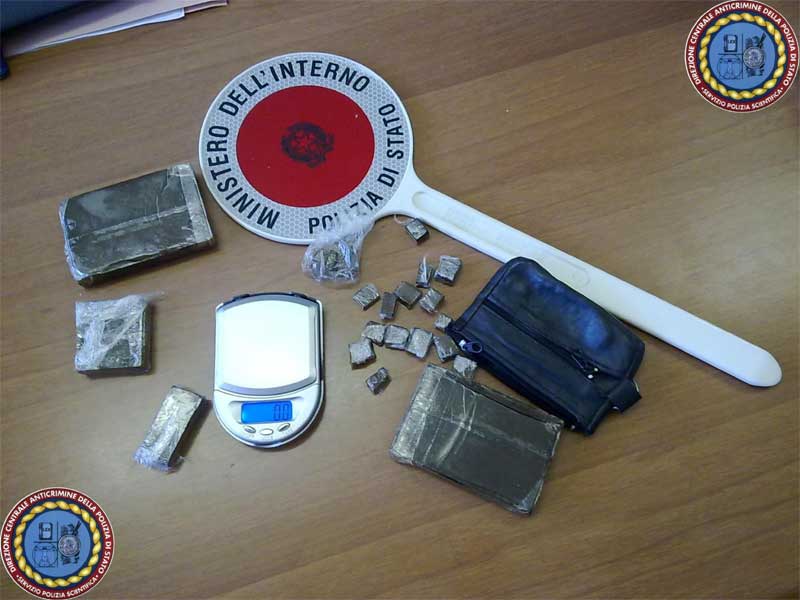 Il controllo è scattato alle 22,30 di ieri sera quando gli agenti di una Volante hanno fermato l’auto sulla quale viaggiava un gruppo di giovani. Al controllo è emerso che uno dei quattro ragazzi era un pregiudicato sottoposto alla misura di sorveglianza speciale che gli impone l’obbligo di rimanere in casa tra le 22 e le 6. L.J., 28enne, essendo recidivo, è stato arrestato e avrà un processo con rito direttissimo. Nel corso dei controlli però gli agenti hanno notato anche che l’altro ragazzo della comitiva, A.L. incensurato di 26 anni, aveva assunto una postura defilata ed aveva un atteggiamento sospetto. E’ quindi scattata la perquisizione personale e all’interno di una tasca dei suoi abiti gli agenti hanno trovato un borsellino in pelle all’interno del quale erano contenuto diciassette dosi di hashish, porzionate e confezionate, dal peso di poco più di 26 grammi. E’ quindi seguita, come da prassi, la perquisizione domiciliare che ha consentito di rinvenire e sequestrare oltre 250 grammi di hashish suddivisi in panetti, un bilancino elettronico di precisione, un “trincia-stupefacente”, cartine e la somma di € 430,00 in banconote di piccolo taglio.